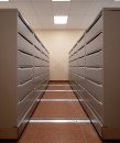 Разработали индивидуальный проект расстановки стеллажей. Установили мобильное основание на уже имеющиеся у клиента картотеки и добавили новые. Неровности пола скорректировали установкой фальшпола.