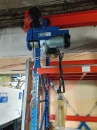 Установка стеллажей с электрической талью по всей длине – 24 метра, которая укомплектована полиспастом (блоком), позволила легко перемещать грузы весом до 1200 кг в помещении, где нет подъёмных механизмов.