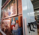 Эти стеллажи оснащены специальными разделителями, которые обеспечивают надежную фиксацию и защиту каждой иконы или оклада от повреждений и царапин. Такая конструкция позволяет удобно размещать иконы различного размера, обеспечивая легкий доступ для их осмотра или реставрации.